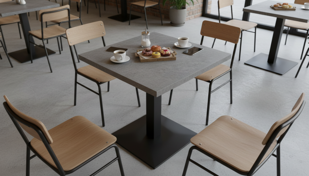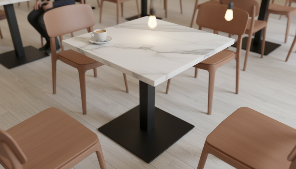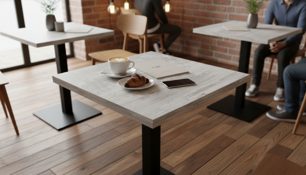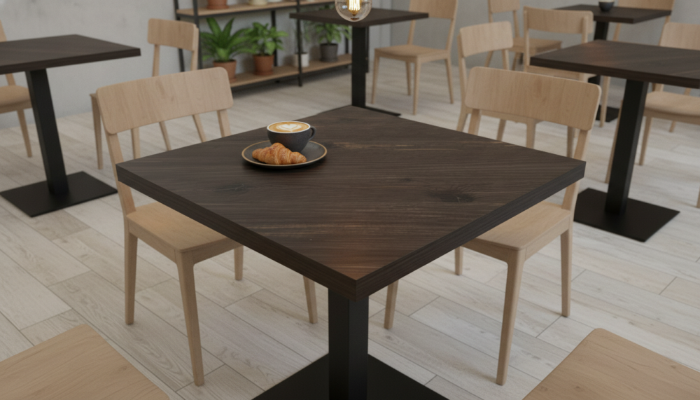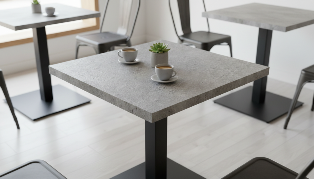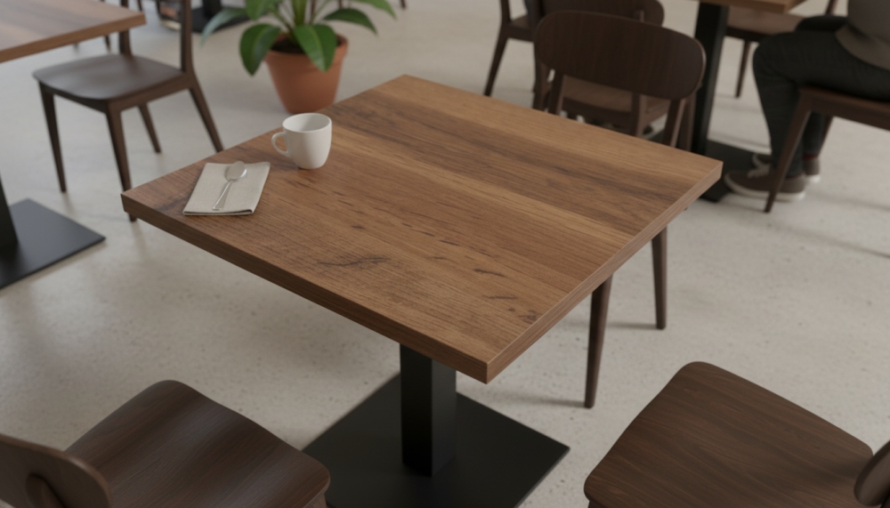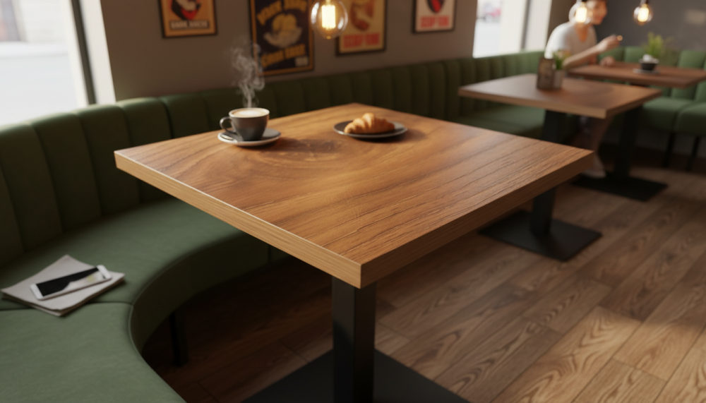 Квадратные, круглые, прямоугольные столешницы HPL. Это ламинат высокого давления. Покрытие МДФ изготавливаеся методом сухого прессования мелкой древесной стружки.