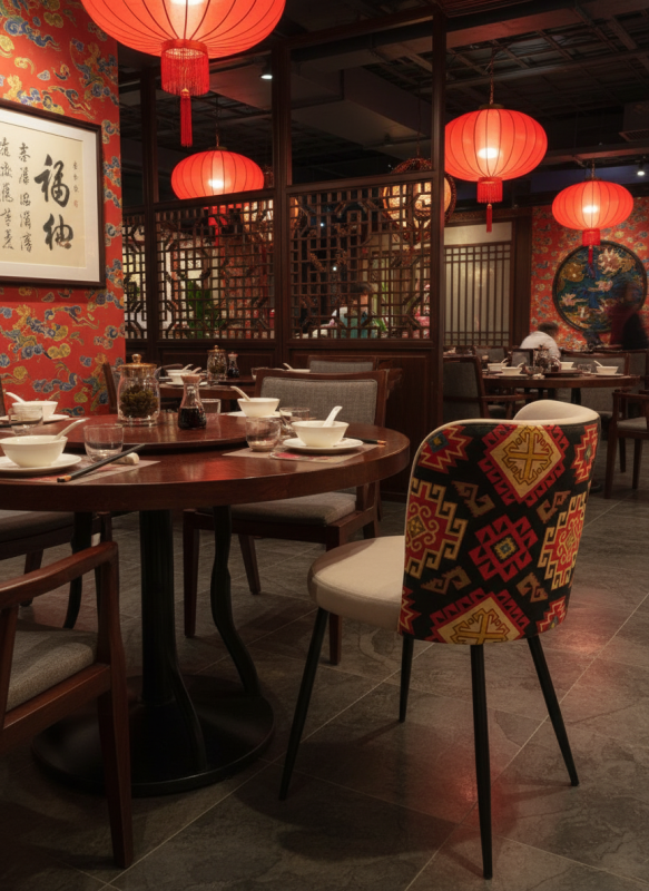 Комфортный стул для кафе, ресторана. Стильный рисунок на спинке.
